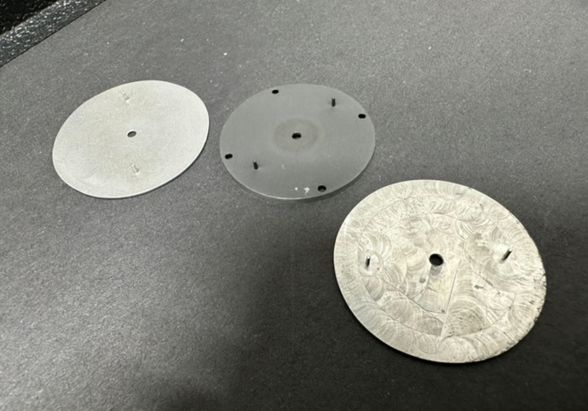We use the same process on the dials for the GCT watch, but the dials are made from aluminum, so the final appearance is slightly different.