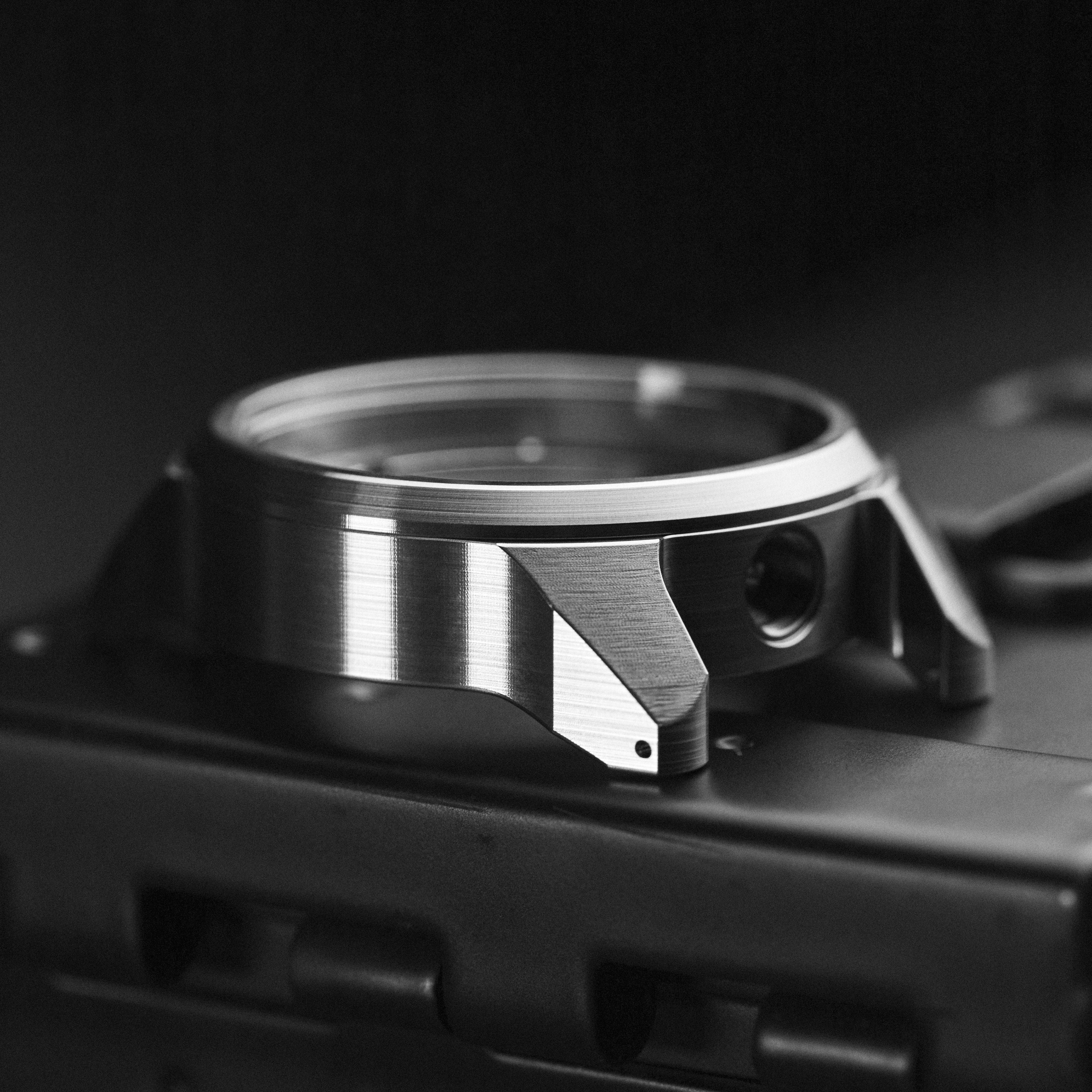 The cases, bezels, and case-backs of both watches are CNC machined from 316L stainless steel billet here in Colorado. We start from scratch and cut each case one at a time, because we think that's the best way to get something that'll last a lifetime. We like to say "we're Engineers, not Watchmakers," and if you watch our YouTube videos about how we make these parts, you'll see why.